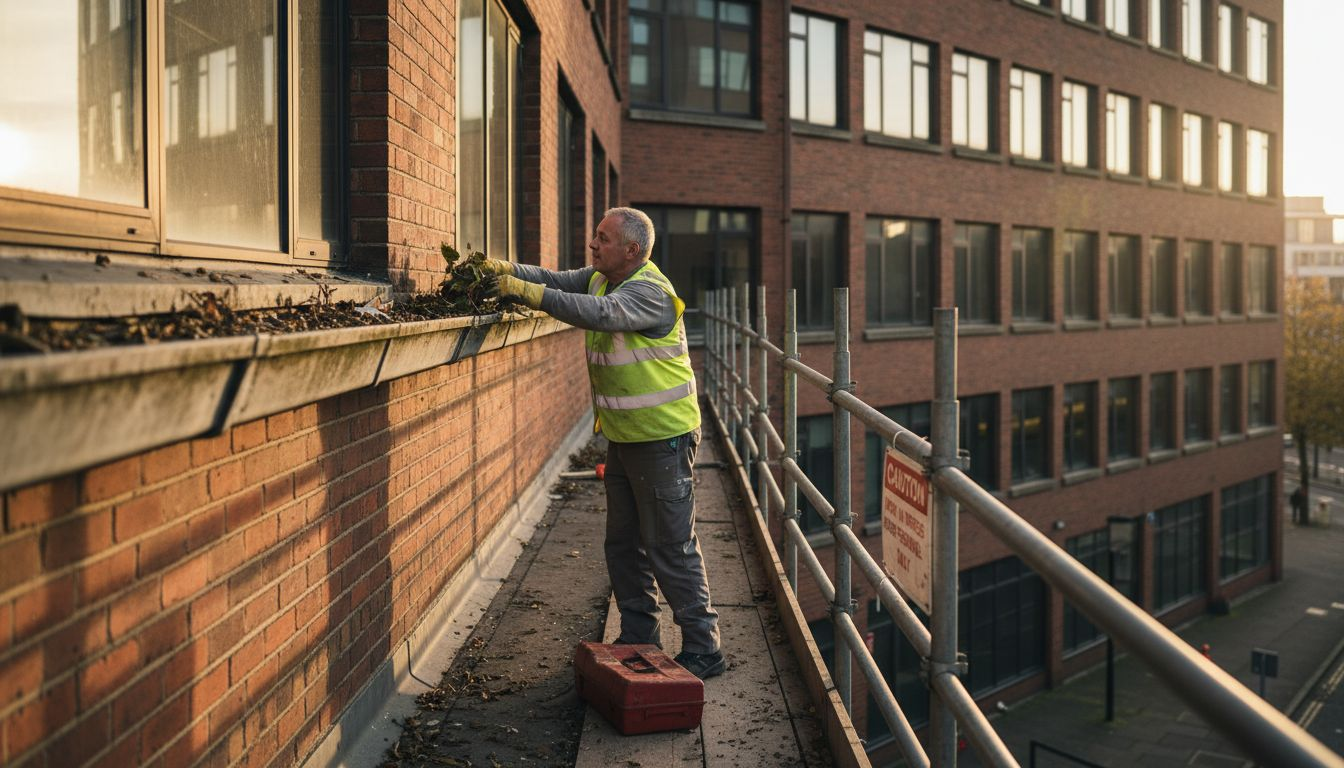 Commercial gutter cleaning explained: discover benefits, cleaning methods, legal responsibilities, costs, and safety considerations for property managers and owners.